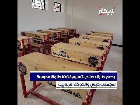 إيجاز فيديو - تسلمت إدارة التربيةوالتعليم في محافظة الحديدة، 1008 طاولة مدرسية #شبكة_إيجاز