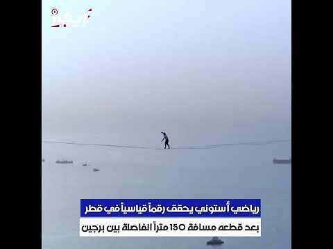 رياضي أستوني يحقق رقماً قياسياً في قطر، بعد قطعه مسافة 150متراً الفاصلة بين برجين.